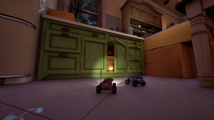 和那些主要以扮演人形生物的同类游戏不同,《双轮成行》就把扮演重心放在了许多玩家童年都接触过的玩具——遥控汽车上。