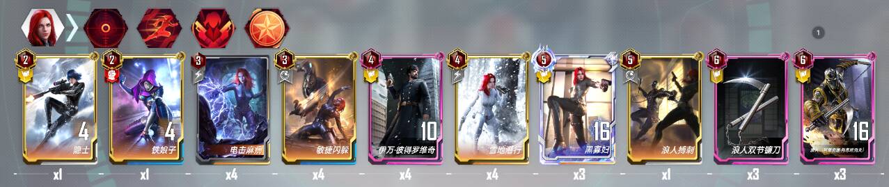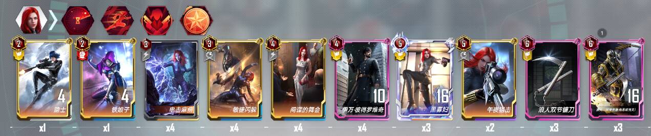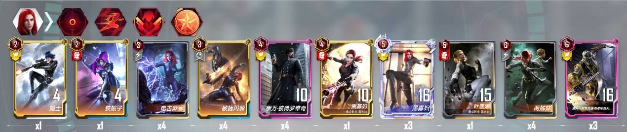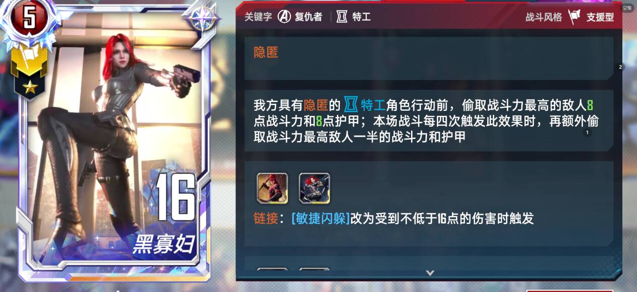 敲重点核心卡:黑寡妇(注意带上武器效果更佳)四次行动吸半战甲,开玩笑,记得上钻皮,毕竟是前任策划最爱的角色