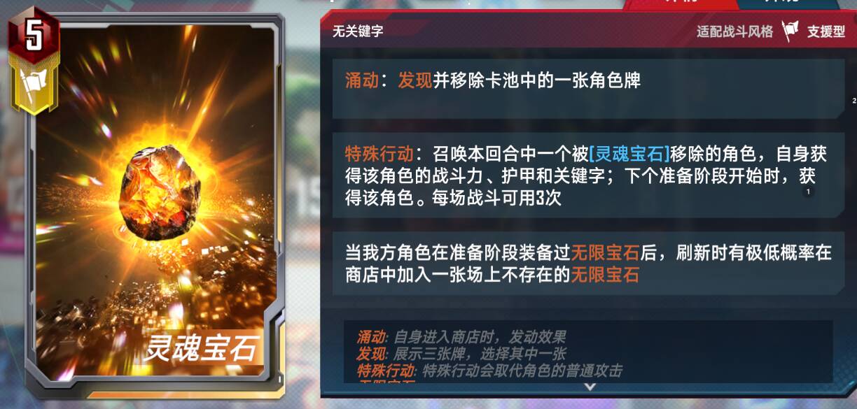 5费:灵魂宝石:滤卡必备,优先滤没用的非锁定卡(可以考虑空间宝石过渡,隐身即无敌)除了宝石我别无选择