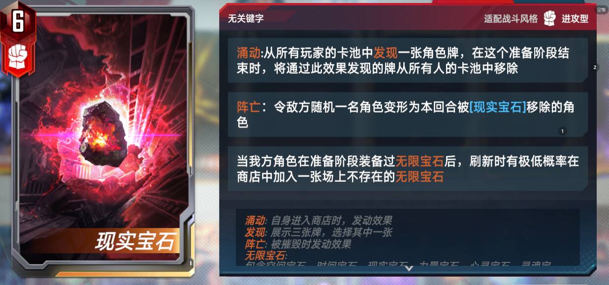 也可考虑带现实宝石:毕竟这游戏凑齐6宝石就能赢不是吗?但是必须有2张以上再考虑,不然只能单纯过滤卡使用了