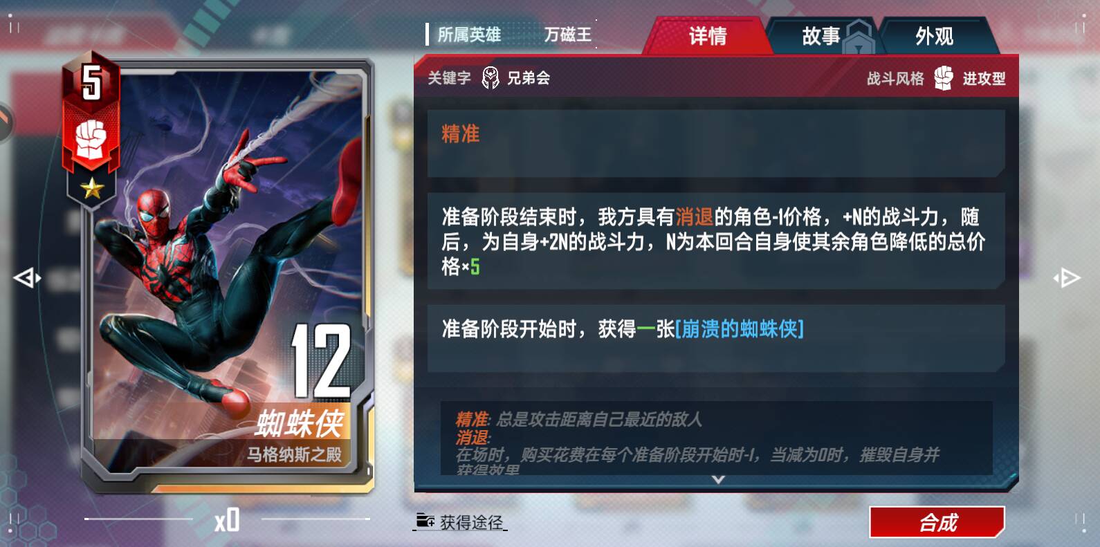 一、小黑子只有和拥有“蜘蛛侠”关键字的角色才能融合,蜘蛛侠(马格纳斯)虽然名字叫蜘蛛侠,但是不能融合: