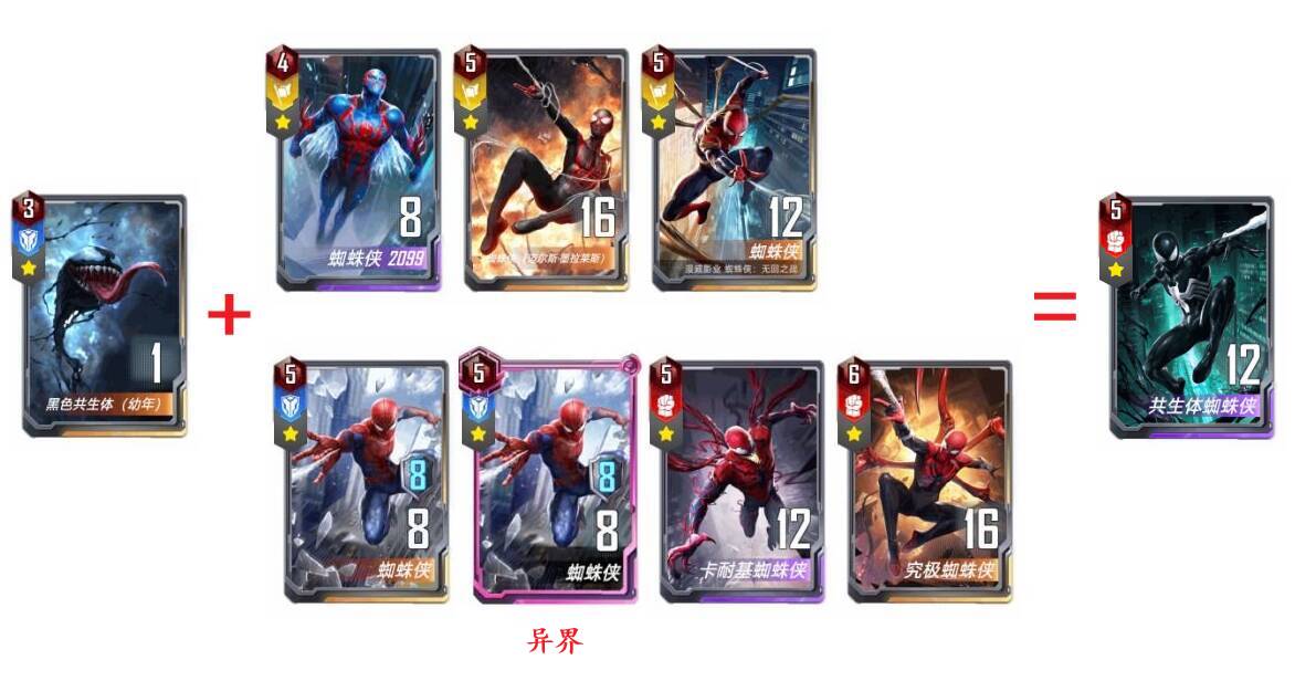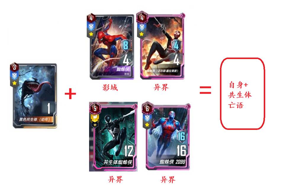 七、小黑子+其他蜘蛛侠角色=该角色本身+共生体亡语效果