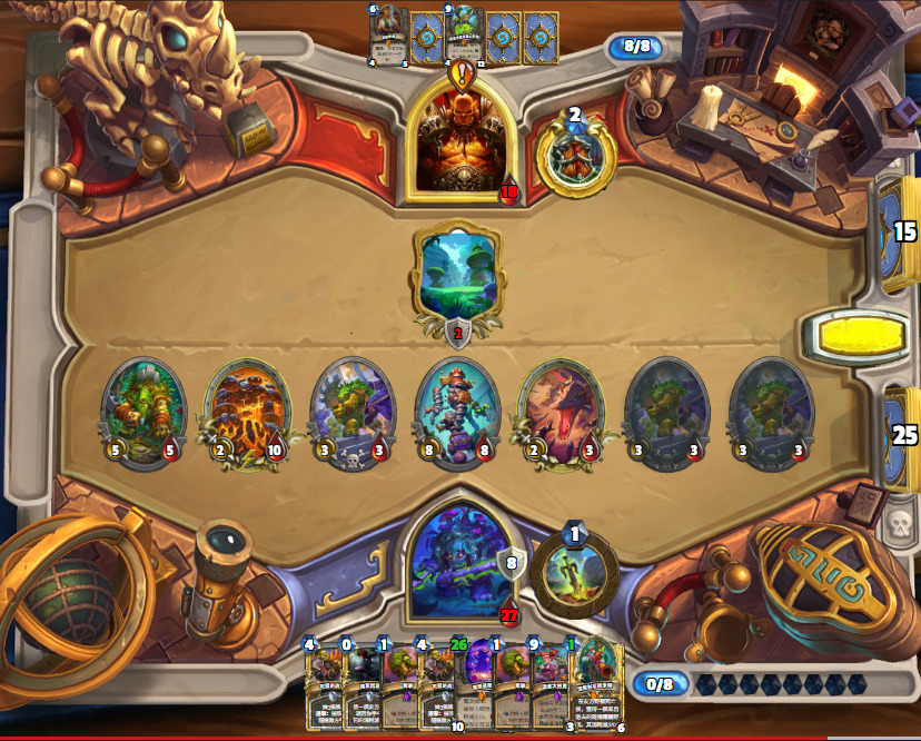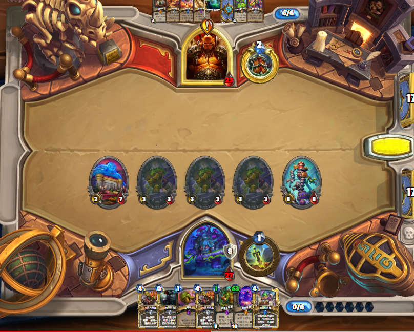 放一下今天打任务战很顺的一局,五费做完任务拉满场面,然后每回合拉满场面直到战士断解(设计师理想的设计?)