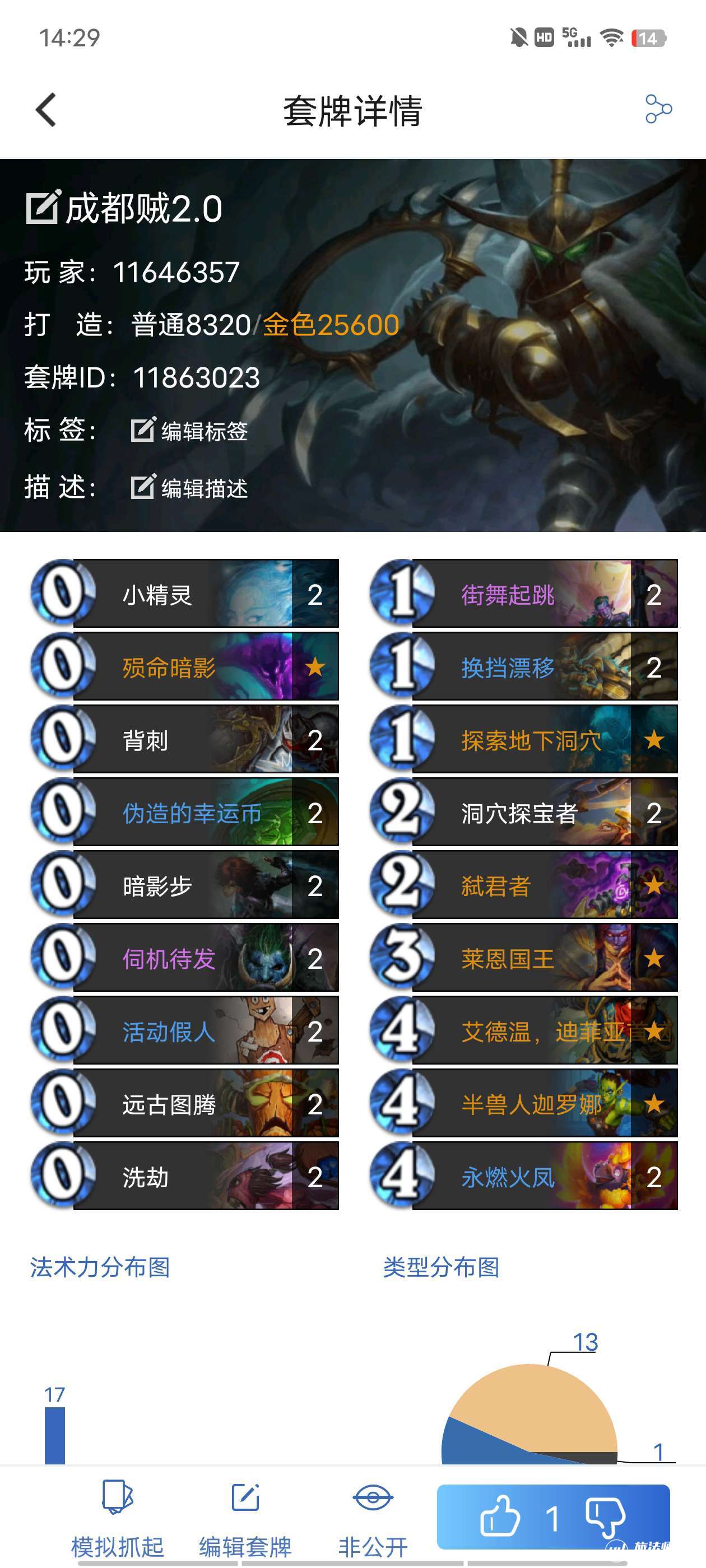 卡组携带了双抽刀+双漂移,除去直接上手的任务,一共三张传说,两刀砍出去,基本上能把该抽的牌抽过来。