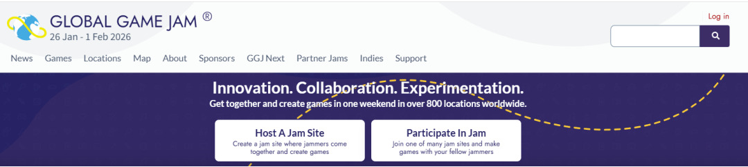 2、GGJ全球官网注册请登录 Global Game Jam官网 https://globalgamejam.org/在首页 右上角点击 “Log in” 进行已有账号登录或者新账号注册。