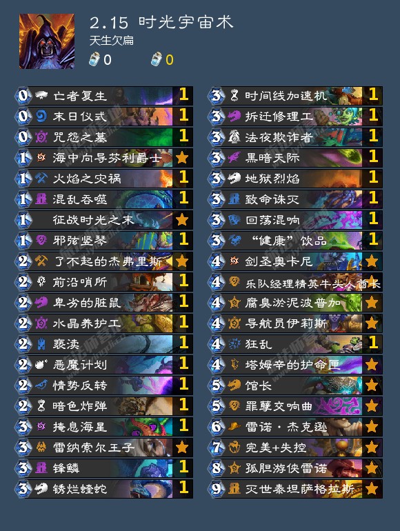 费用曲线低、节奏顺、抗快强、任务奖励克制其他慢速卡组,甚至有些对手迫于清空手牌的压力必须自己甩手牌,从而便于我们利用手牌差打运营,可以说新任务的加入重燃了宇宙术之魂!Make Warlock Great Again!