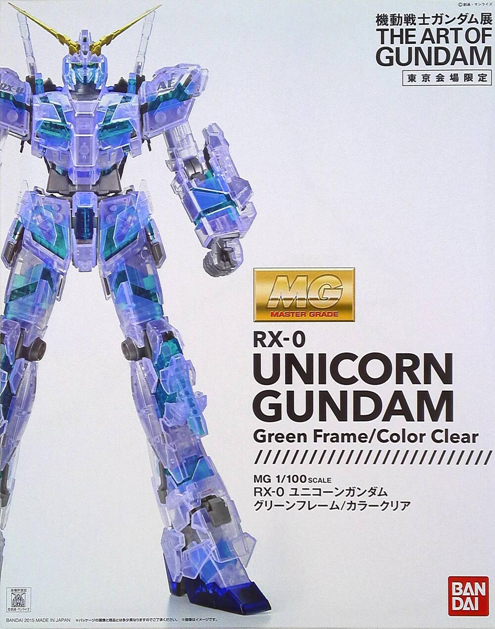 機動戦士ガンダム展 THE ART OF GUNDAM 東京会場限定で販売された、1/100 MG RX-0 ユニコーンガンダム グリーンフレーム/カラークリアです。