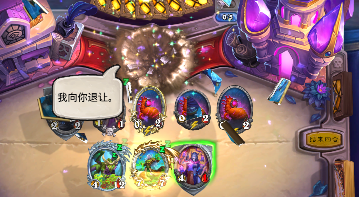 于是,我们就有了一个纵轴(实际上纵轴还能放其他东西),也就是把多少资源放到打对方英雄生命值上,并在左下角请出另一位神仙——主玩家开局抽到后打出就能赢的炉石:
