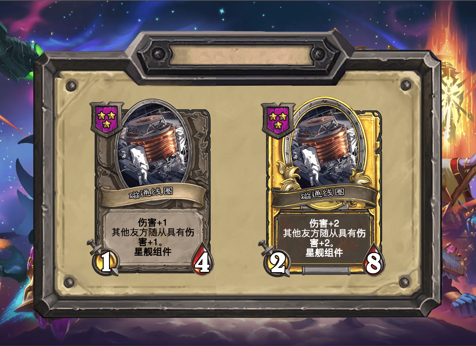 - 与磁通线圈的互动:配合磁通线圈可以白嫖伤害+1。(随从在伤害+1被偷取后重新被磁通线圈赋予伤害+1)