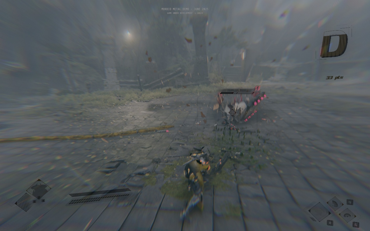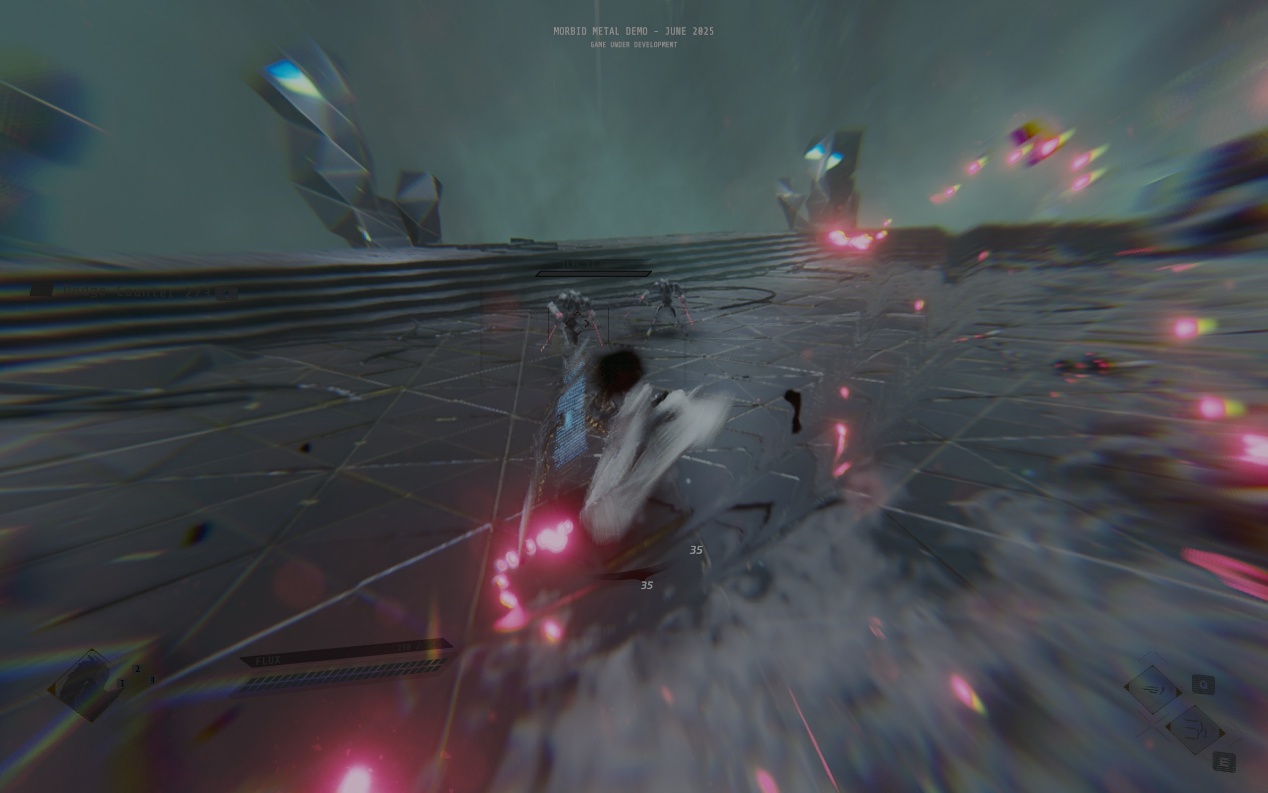 在3i游戏展上,《Morbid Metal》就抓住了笔者的眼球。锐利的机甲设计风格、富于山林特色的场景以及快节奏的战斗动作勾勒出了一张让人浮想联翩的蓝图。在体验了《Morbid Metal》(暂译《病态金属》)的试玩版本之后,围绕着高速战斗构造的一系列系统也为畅想的展开打下了坚实的基础。当然了,瓜田有猹,白璧有瑕,除了没有中文之外,本作在很多细节设计上也有不少值得商榷之处。