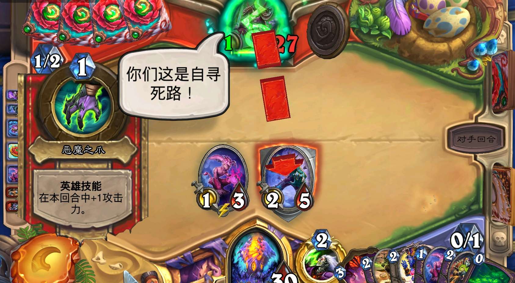 仅加入两张新卡恐惧迅猛龙。2费亡灵3费跳币迅猛龙+0费亡语的小combo尝试过两次,效果还挺好