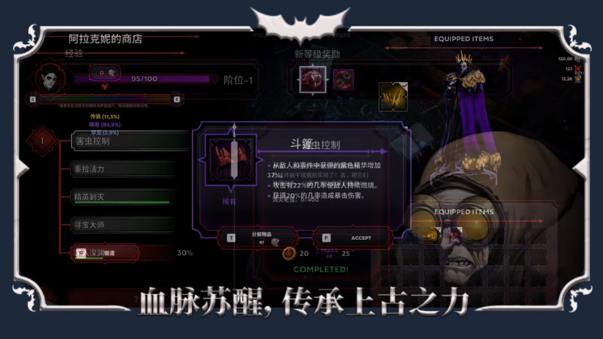 在高德拉斯领主的指引下,你将踏上继承王座的道路。通过局外成长系统,消耗黄金、紫色精华、声望等资源,永久升级天赋、解锁全新技能。别忘了喂养你的魔仆,提升他们的战斗能力。随着剧情推进,你需要完成猎人大师赫尔松的试炼,帮助炼金术士伊戈尔找回失落的典籍,魔镜深藏的秘密也将一一揭晓。