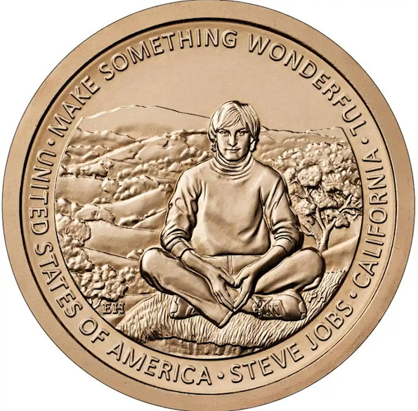 从公布的设计图来看,乔布斯硬币展现了的年轻时候史蒂夫·乔布斯,他坐北加州风景之中——起伏的山丘上覆盖着橡树。