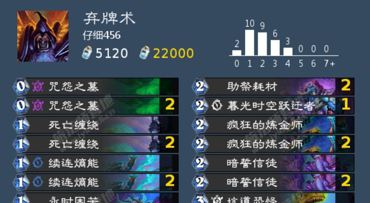 大家好,我是为什么不练琴(美服ID:eintesla#1610),一个热爱中速卡组的玩家。没错其实我玩宇宙猎长大的。留学以后由于懒得开VPN所以转战了美服。靠着国服炉石停止运营时在美服留下的底子倾家荡产合了一套宇宙猎并打上传说以后,我被一套靠着速写美术家抽取灵魂弹幕并用过期货物专卖商不停弃牌回手的弃牌术连着打爆了两次,这套卡组甚至还携带了麻风侏儒和炽烈烬火来提速(美服不只有一个人玩这套,且他们都带麻风侏儒)。在郁闷被麻风侏儒打败的同时,我也发现了直伤弃牌术的可能性。在达成了把这两张一费卡优化出去的终极目的以后主要是不能接受卡组里有麻风侏儒,这套卡组便诞生了。我使用这套卡组从美服400名打至62名,感觉对绝大多数卡组都有一战之力甚至能做到碾压,更是打爆了我玩宇宙猎被打爆的那套弃牌术,所以发出来给大家分享。这是我第一次投稿卡组,抛砖引玉,望大家多提建议。