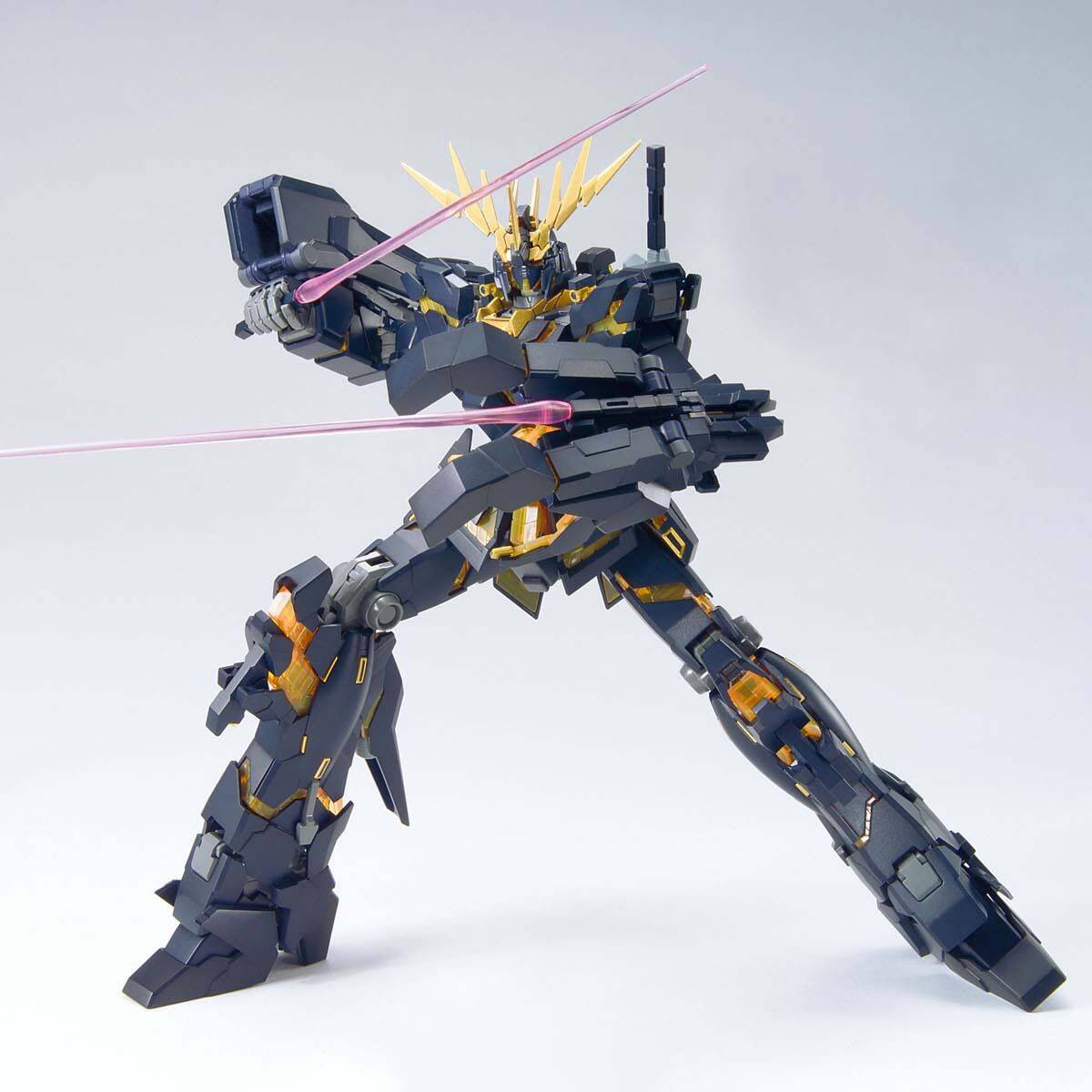 ■『機動戦士ガンダムUC』より「黒いユニコーン」バンシィがMGにて登場。 ■ユニコーンモードからデストロイモードへの変身を完全再現。 ■サイコフレーム部に特殊素材を使用。 ■左手のアームド・アーマーVN、右手のアームド・アーマーBSには展開などのギミックを搭載。
