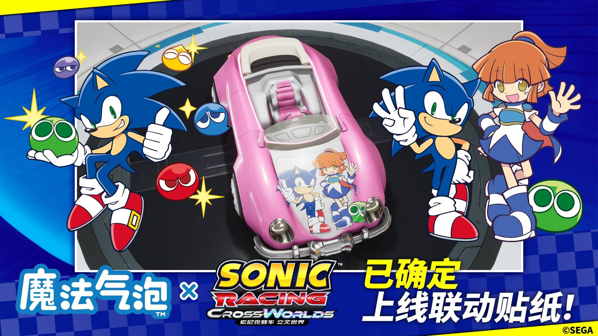 2026年正值“索尼克”系列35周年,《索尼克赛车 交叉世界》将与同样迎来35周年纪念的动作益智游戏“魔法气泡”系列进行联动,上线两款可用于本作赛车自定义的联动贴纸。更多联动详情与上线日期,敬请期待后续消息。