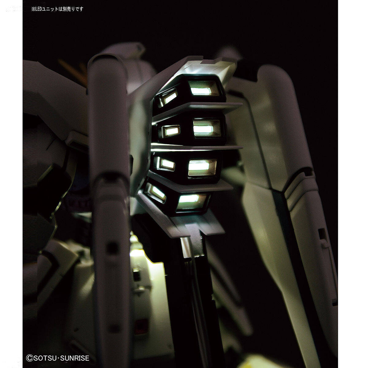 ■胴体内部に導光パーツが採用され、別売りの「発光ユニット(白)2灯式」を台座にセットすることで、腹部ダクトやバックパックダクトから最大可動モード時に排出される熱や「MEPE」を演出可能!