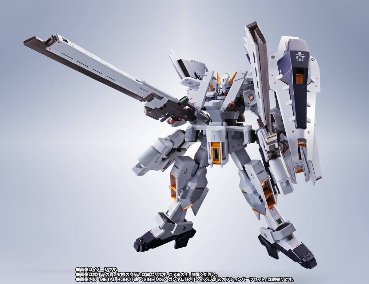 「METAL ROBOT魂 ガンダムTR-1[ヘイズル改]&オプションパーツセット」(別売り)と組み合わせることで、8形態以上の装備バリエーション再現が可能!