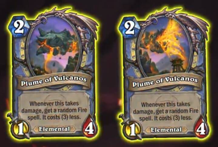 每当本随从受到伤害,随机获取一张火焰法术牌,其法力值消耗减少(3)点。