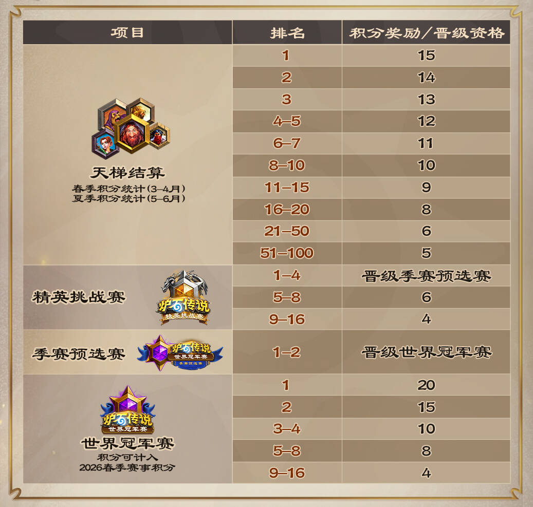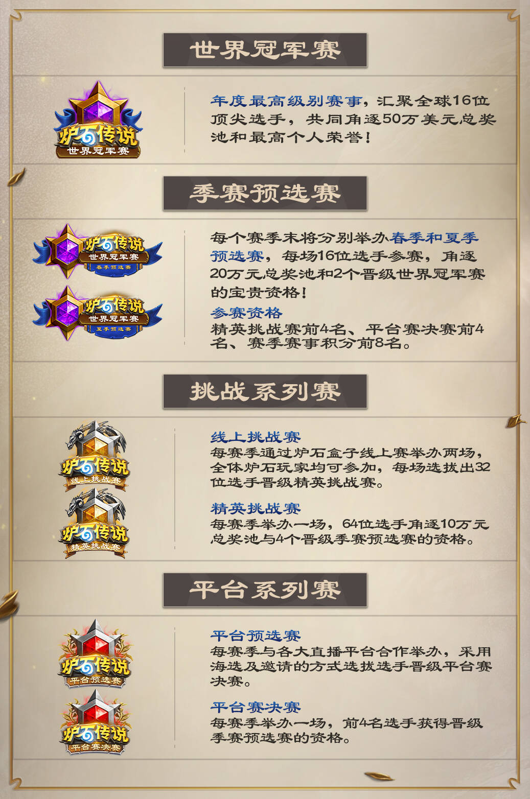 国服炉石电竞2026年电竞计划今天公布。总的来说,今年国服电竞变化不大,主干依然是两个赛季和天梯赛道、挑战赛道、平台赛道三条晋级路线。