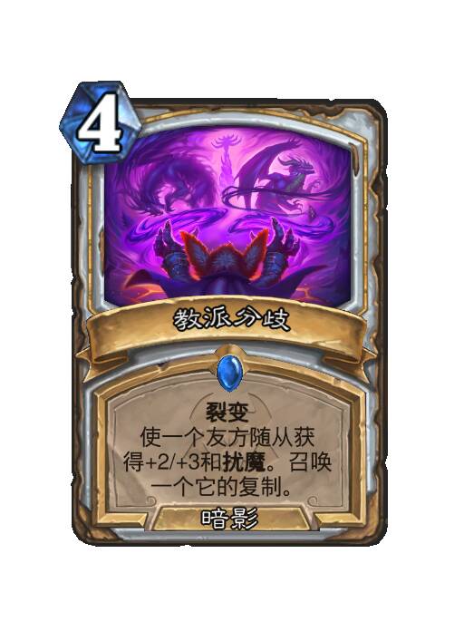 裂变。使一个友方随从获得+2/+3和扰魔。召唤一个它的复制。