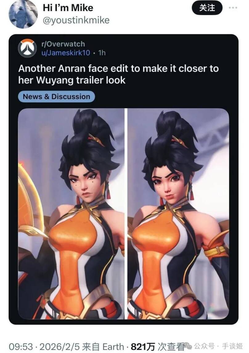 这个回复显然不是很让玩家满意——一方面,并不是所有欧美玩家都希望安燃被改得更加“成熟”。另一方面,《守望先锋》是有国服的,中国玩家的基数同样庞大,虽然有种说法是“现在还在玩《守望先锋》的人什么都可以吃得下的”,但如果暴雪真的因为这些玩家的理由,把安燃修改成更符合欧美人印象的中国人的建模,国内玩家自然是不愿意的。