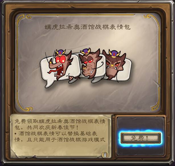 含战棋模式3款龙生九子主题的新(史诗级)表情,免费领取。