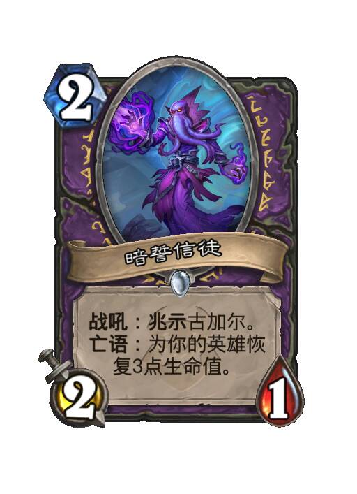 战吼:兆示古加尔。亡语:为你的英雄恢复3点生命值。