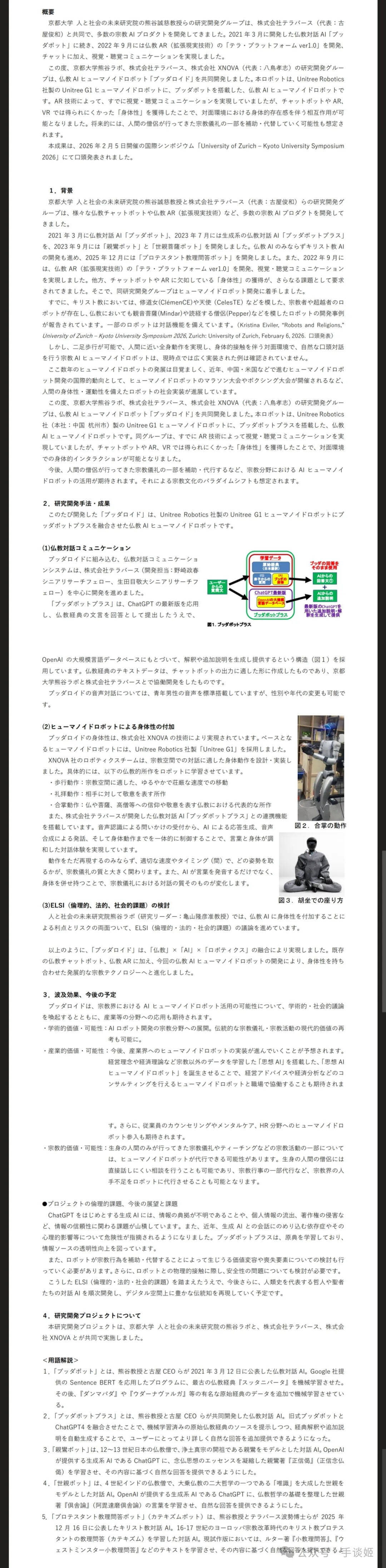 2026年2月24日,京都大学研究团队宣布,他们通过宇树机器人,整出了赛博高僧,名字非常简单粗暴,就叫做佛陀机器人。
