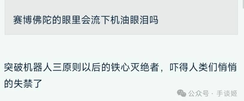 这么想想之前看到机器人下台时会自动蜷缩起来让人类将其抱下台的动图,不晓得赛博佛陀是否也会在盘腿念佛之后,发消息给僧人们,让他们帮忙把自己抱起来呢……
