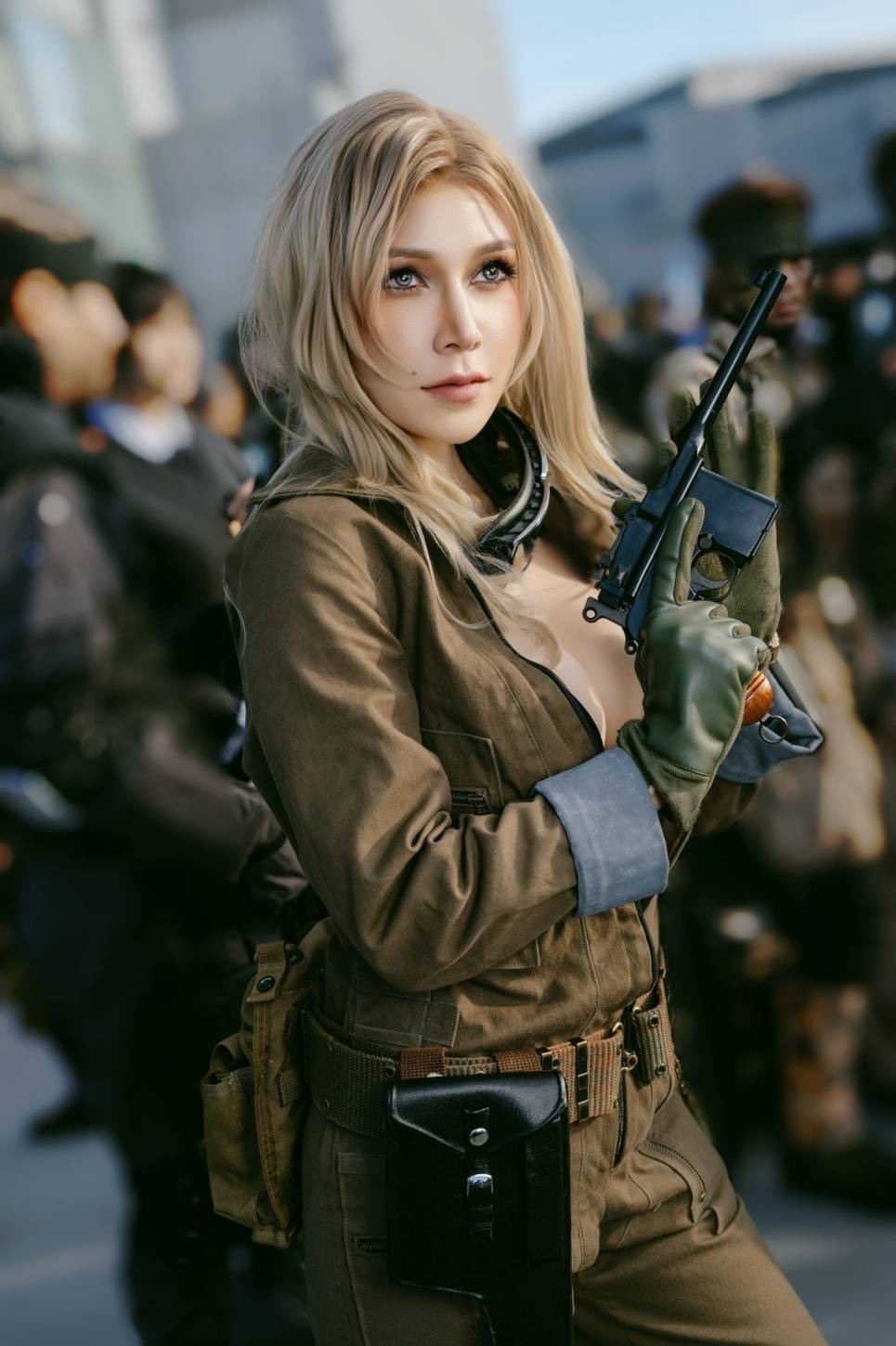《合金装备3》EVA是一位极有魅力的御姐,和主角Snake有着千丝万缕的联系。近日日美混血小姐姐KUREHA分享了她的EVA Cos美图,完美还原了游戏形象。她身穿开胸紧身特工服,展示自己好身材,吸引众人眼光。