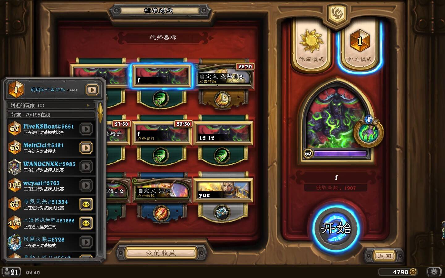 布丁头小女警的宝:在大学期间,大学生有很多空余时间嘛,在慢慢了解到有黄金赛、实力赛这样的比赛后就会想去参加,能赢当然好,同时也能认识到很多朋友。学生时代经济能力有限,但有近的黄金赛还是愿意去尝试的。比赛竞技的感觉和我自己打天梯的感觉完全是不一样的,第一次拿到黄金卡背时也觉得很有意思,就觉得以后有机会一定还要多参与。再到后面一些黄金赛,虽然最好成绩也就广州长隆32强,但对那个大学时期的我来说也挺满意的了。 后面读研究生时炉石退出了国内市场,我也没打了,空了一年多时间,直到回归我又重新来玩,又是有黄金赛了我都会去了。