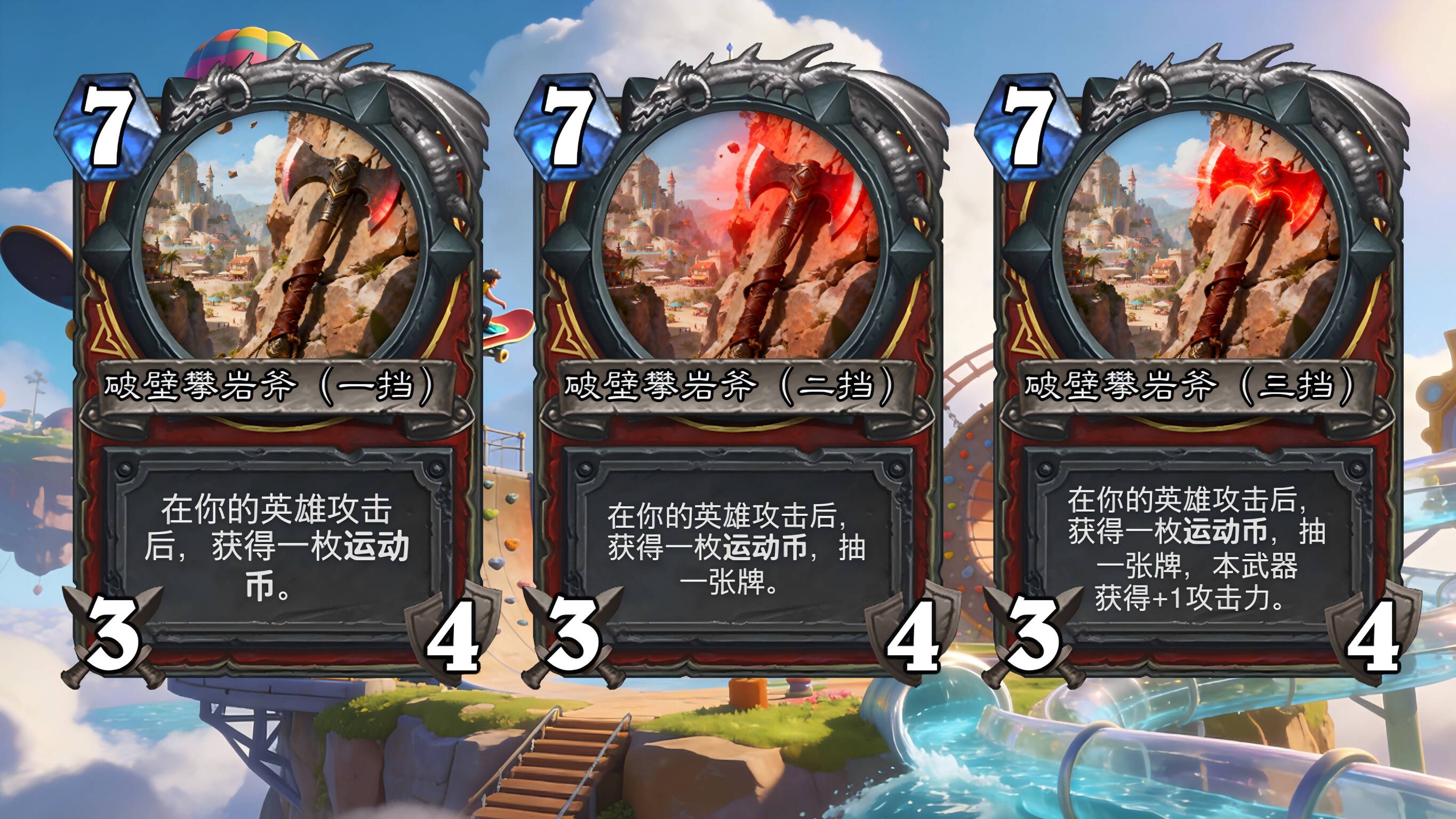 战士除了可以通过卡牌破壁攀岩斧和热血重铸获得运动币之外,每个回合你装备武器或武器被摧毁后可以且仅能获得一枚运动币。战士对应的场景是极限运动区,其能在该场景触发的效果为: