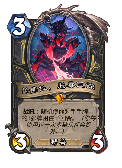 战吼:随机使你对手手牌中的1张牌困住一回合。(你每使用过一次本随从都会提升。)