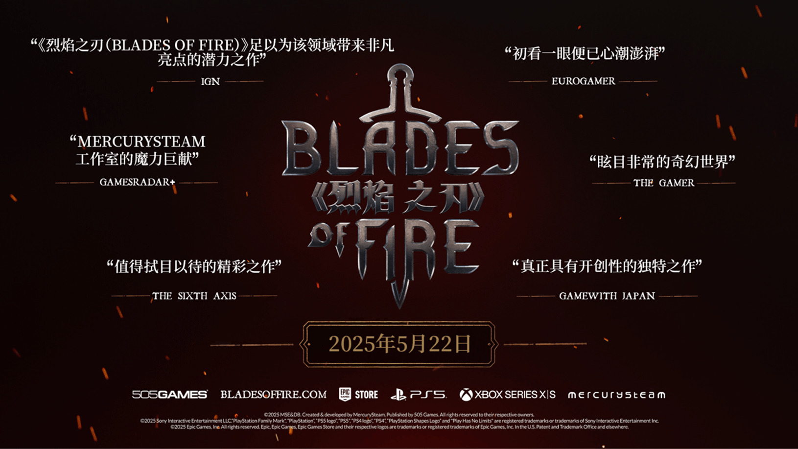 《烈焰之刃》将于 5 月 22 日在 EPIC Games Store、PlayStation 5 和 Xbox Series X|S 上发售,售价为228人民币。EPIC、Xbox 和 PlayStation Plus 用户预购游戏,将获得限定游戏内容和 10% 的折扣。