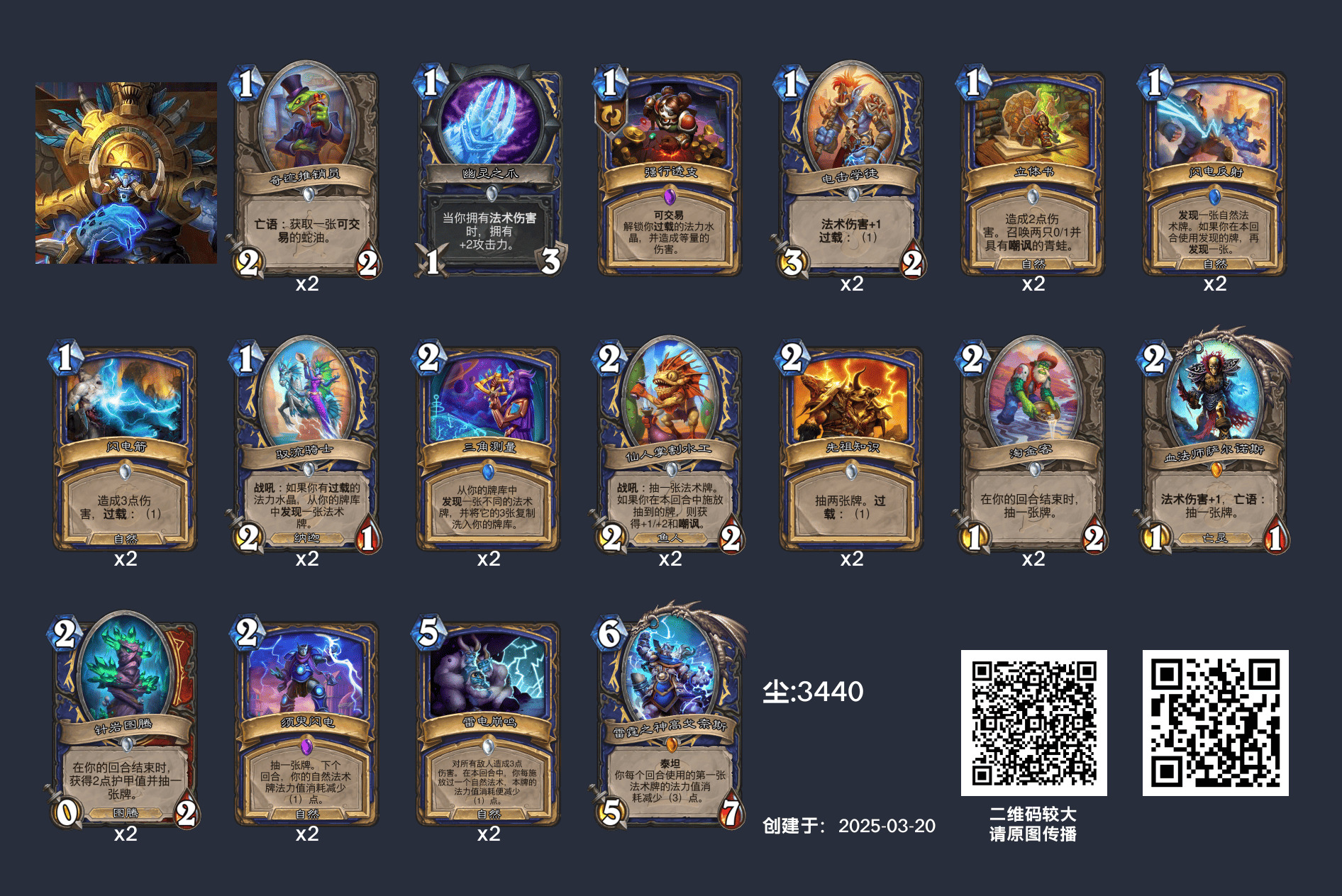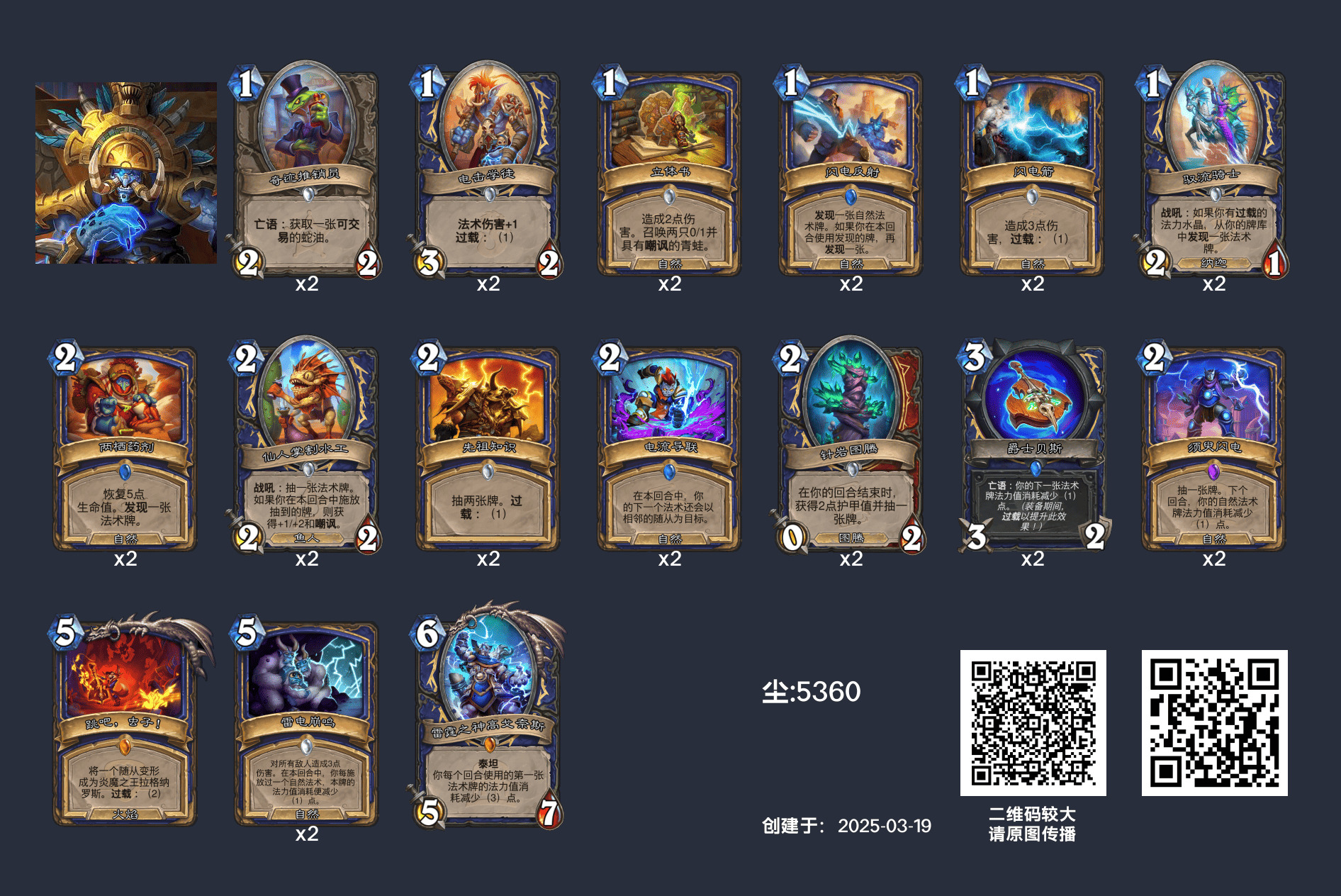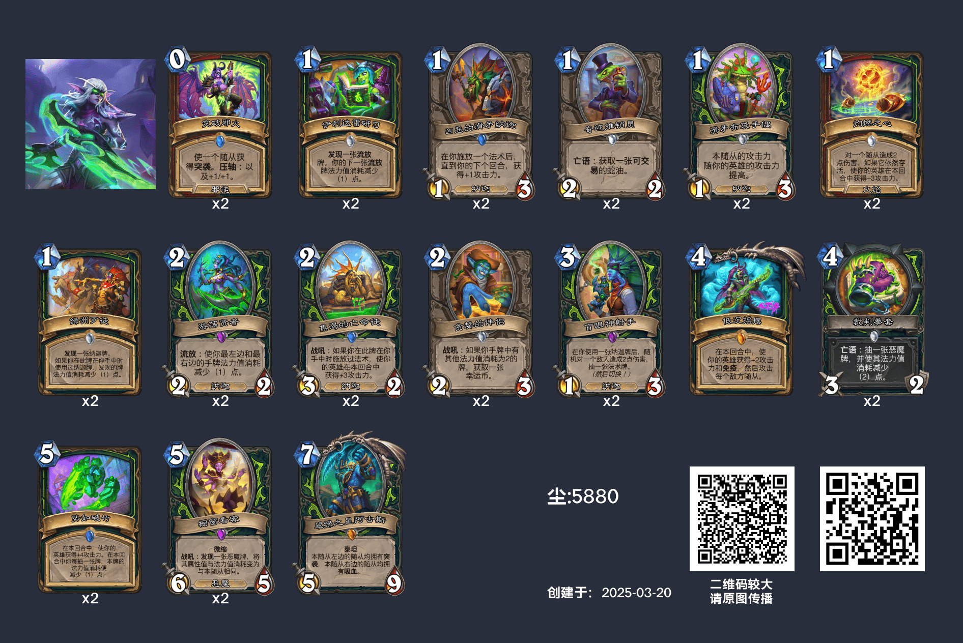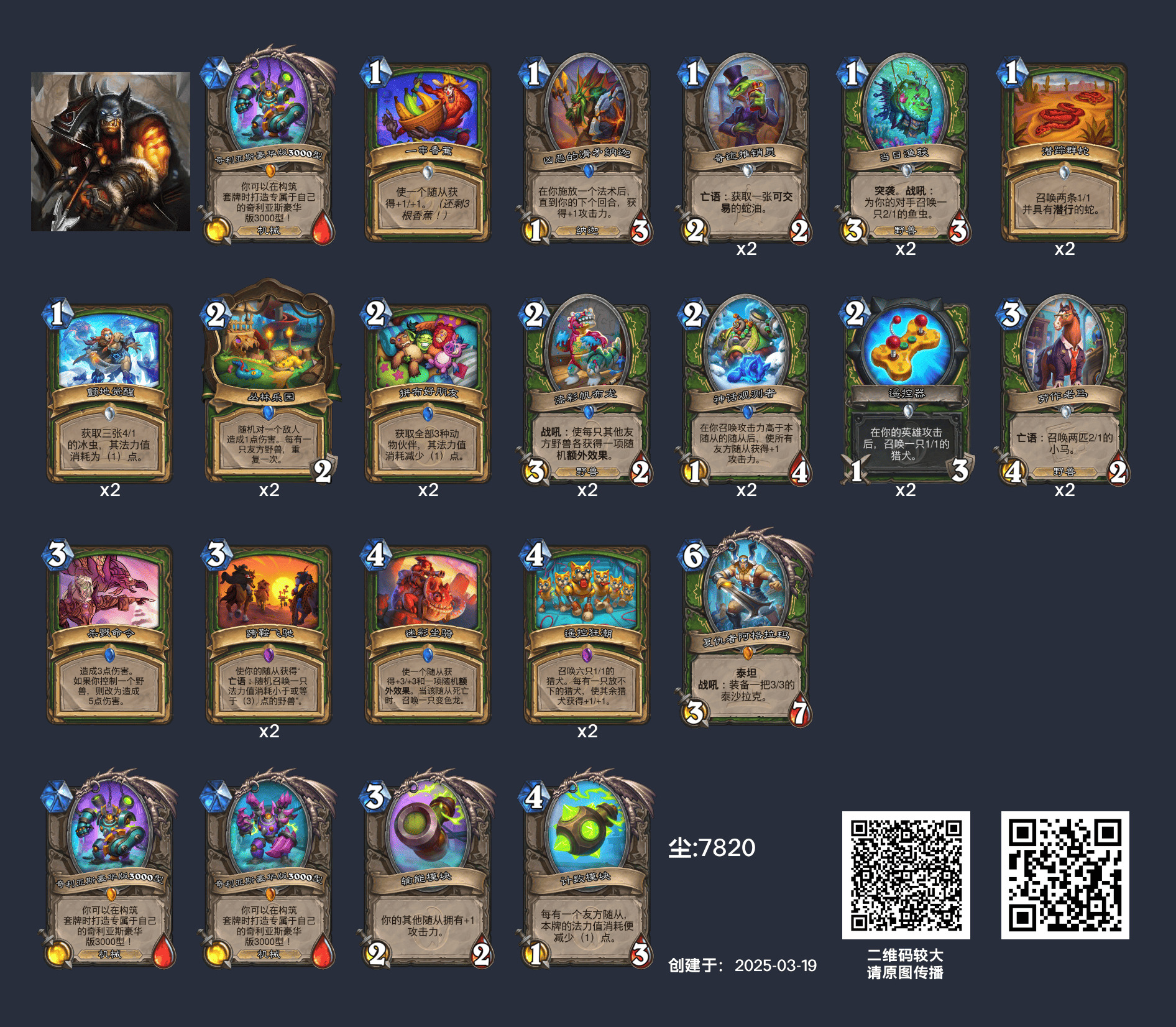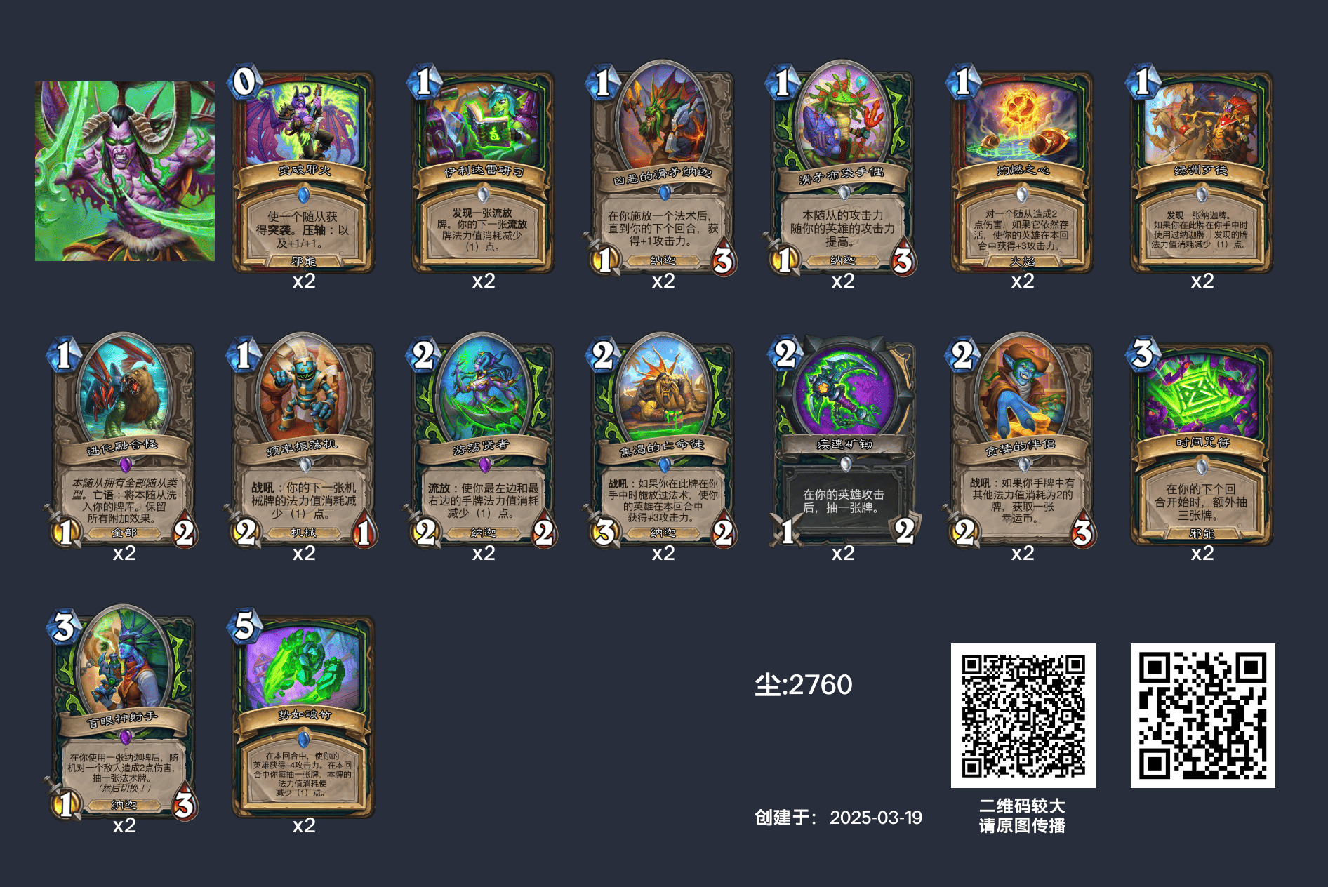 为了针对自然萨,小编塞了一张异教低阶牧师来延后他的启动,但当我带上之后就没遇到萨满了,各位可以根据自己的环境灵活替换成冰片吃刀来针对刀贼。