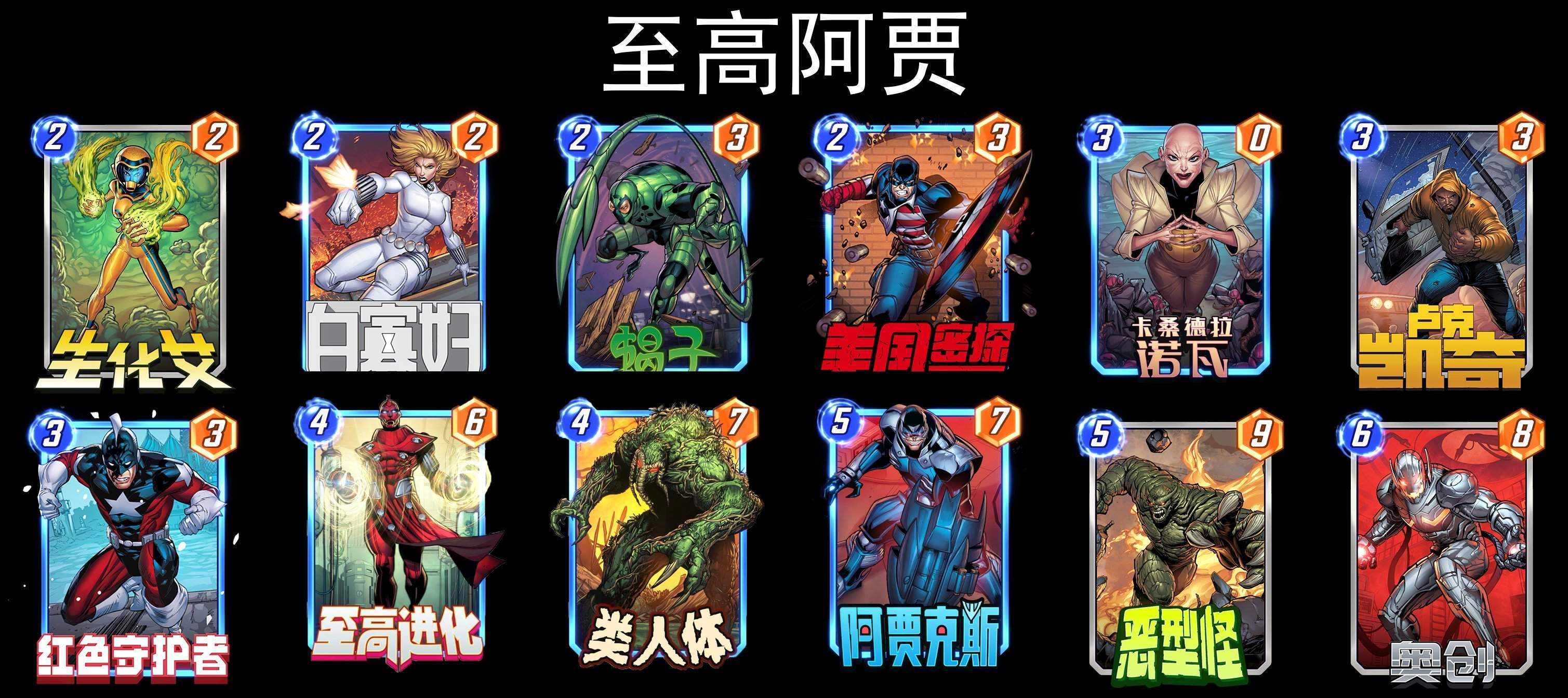 在有阿贾但是缺巫术的时候可以考虑的至高构筑,这里因为单区域高战力有阿贾,浩克的位置替换成了奥创,在地形和斩杀博弈的时候有更多的选择。