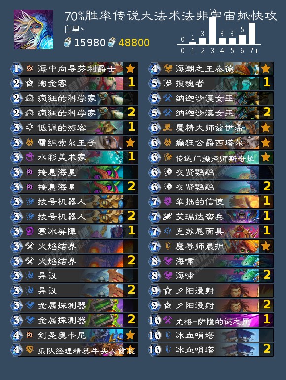 大法术法起码有T2下的强度,体验也很爽,希望大家多多交流,多提建议,我也会随着环境不断优化卡组。