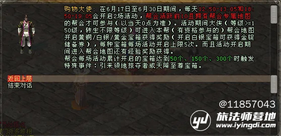 6月17日-6月30日,武林盟将于每日12:50-13:05,18:50-19:05将开启2轮帮派宝箱活动,参与活动可得金锭储备券、称号“探宝达人“、玄金矿石(特大)等珍贵好礼!武林盛夏狂欢期待您的加入!