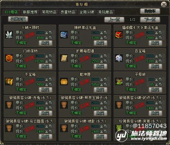 活动期间,奇珍阁-将新开618商店,福缘露、门派信物、坐骑易容令牌等珍贵道具限时折扣出售,请大侠更新后前往购买。