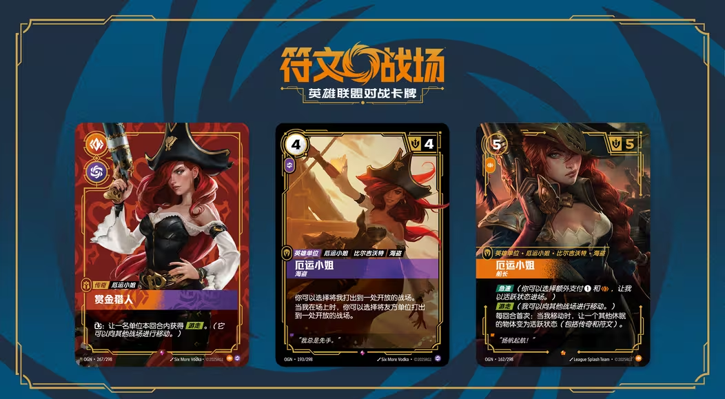 符文战场单卡预览|比尔吉沃特 英雄登场!厄运小姐,海盗、厄运小姐,船长