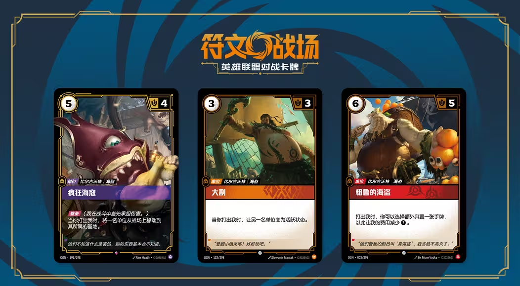 符文战场单卡预览|比尔吉沃特 英雄登场!疯狂海寇、大副、粗鲁的海盗