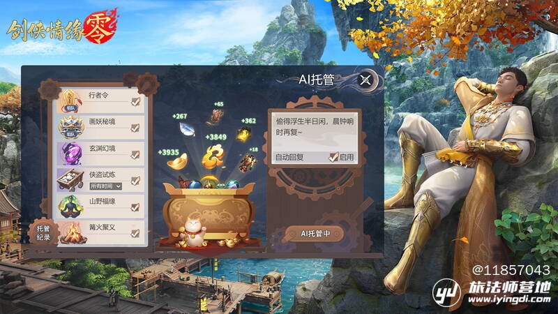 当少侠在大世界探秘宝箱之余,广袤江湖的另一重惊喜已悄然铺展。在《剑侠情缘・零》的江湖中,从游荡的山贼,再到盘踞的秽妖,每一寸土地都藏着可供挑战的劲敌。玩家们可以参与天候开放的“山野福缘”活动,使用AI托管,自动挂机战斗,体验“挂机也能爆神装”的自在逍遥。