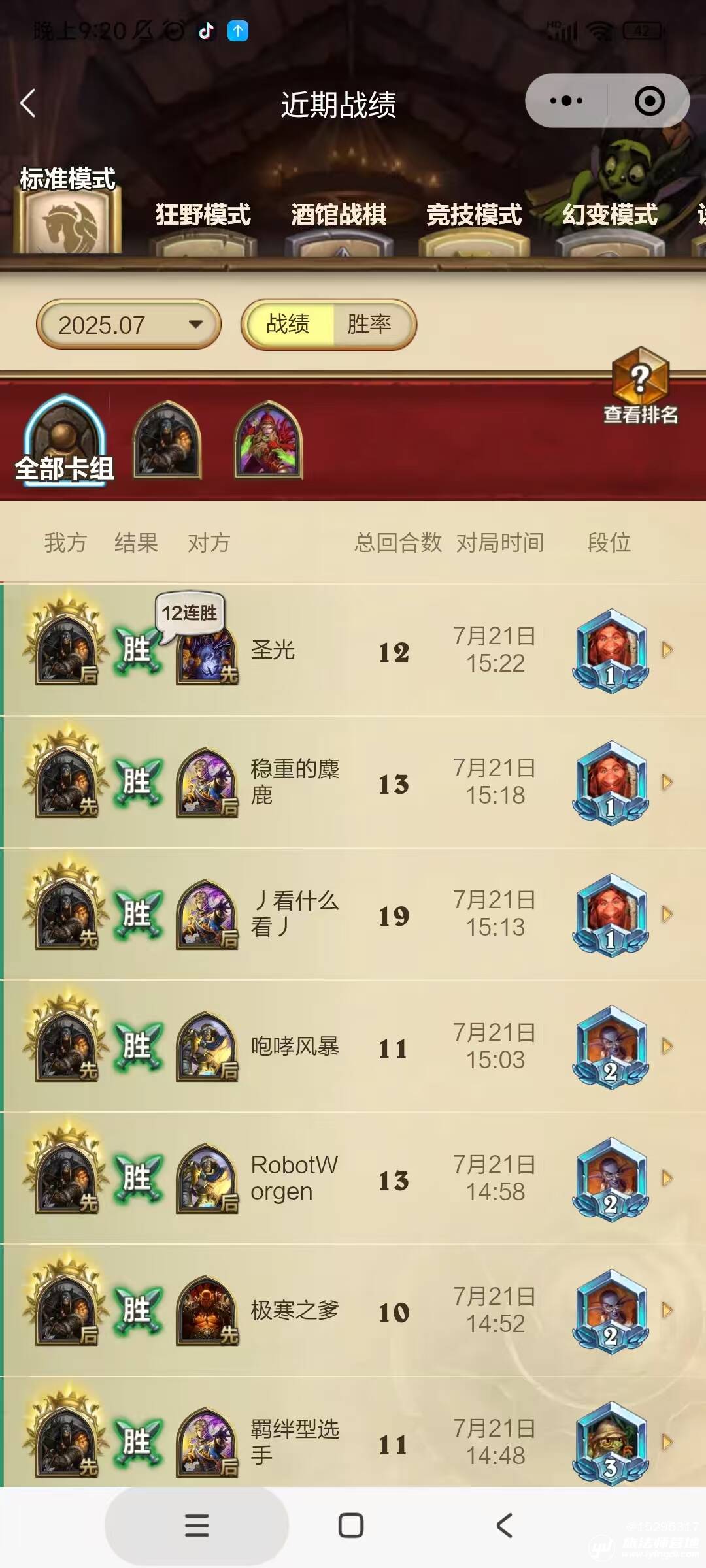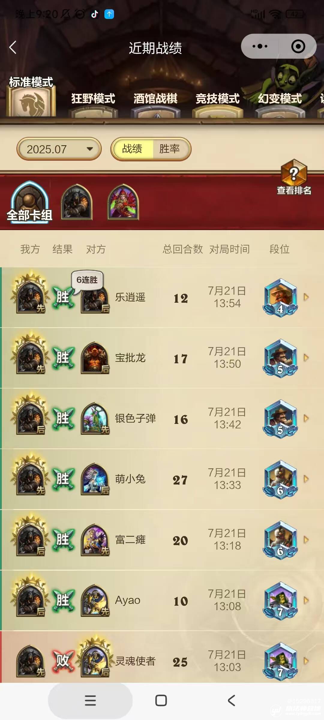 先附战绩 钻石分段7-1,分别取得了6连胜和12连胜,中间因经验不足被战士的30-1一脚踢死断了连胜。