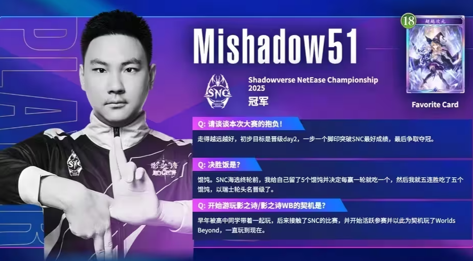 恭喜一只小吾影以2:1的比分战胜星野饼美选手,成为SNC2025年度总决赛的冠军!