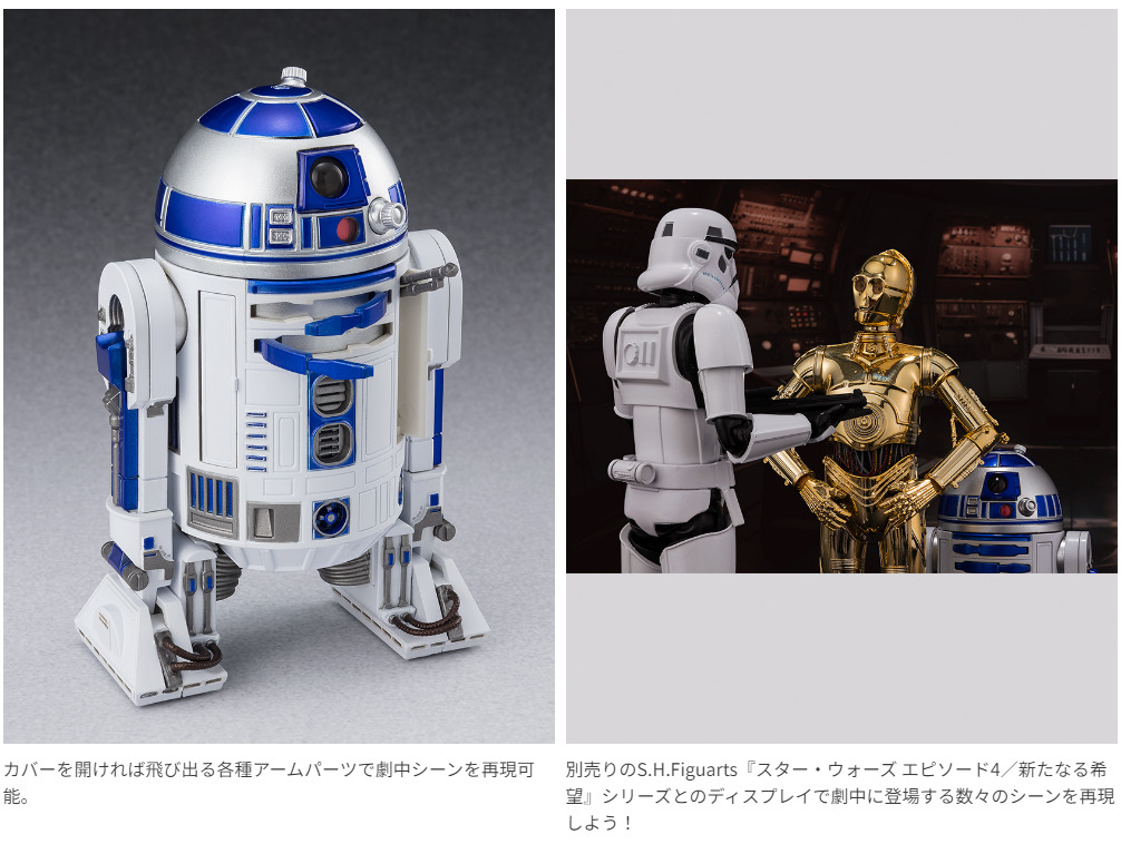 「R2-D2」が本来の鮮やかなホワイトカラーでS.H.Figuartsに再登場。2本脚から3本脚に換装可能。