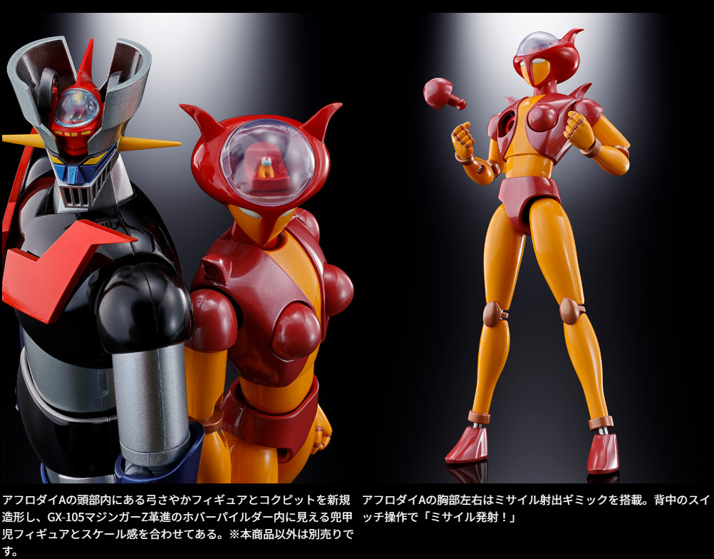 『マジンガーZ』50周年を記念して超合金魂のアフロダイAとミネルバXを2体セットでリニューアル!GX-105マジンガーZ革進に装着できるオプションハンドとマジンガーZ飛行用ロケットも付属。
