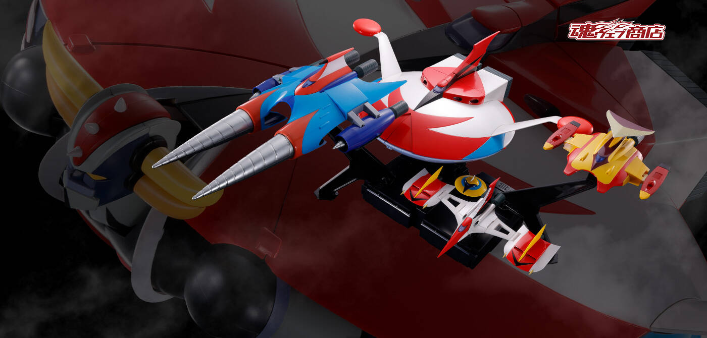 「Spacer」「Double Spacer」「Drill Spacer」「Marin Spacer」4台Spacer以套装出击!与另售的「超合金魂GX-76SP 古莲泰沙 D.C.动画配色版」合体。丰富「古莲泰沙」的多样的组合玩法!附属支援机体「TFO」。