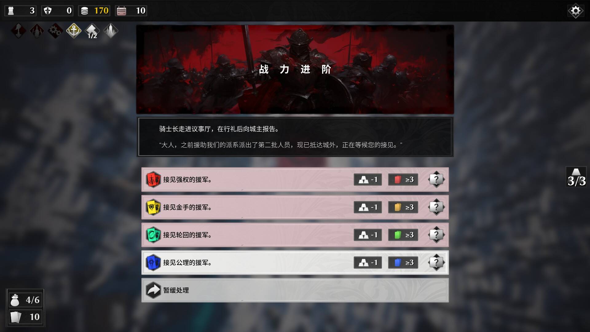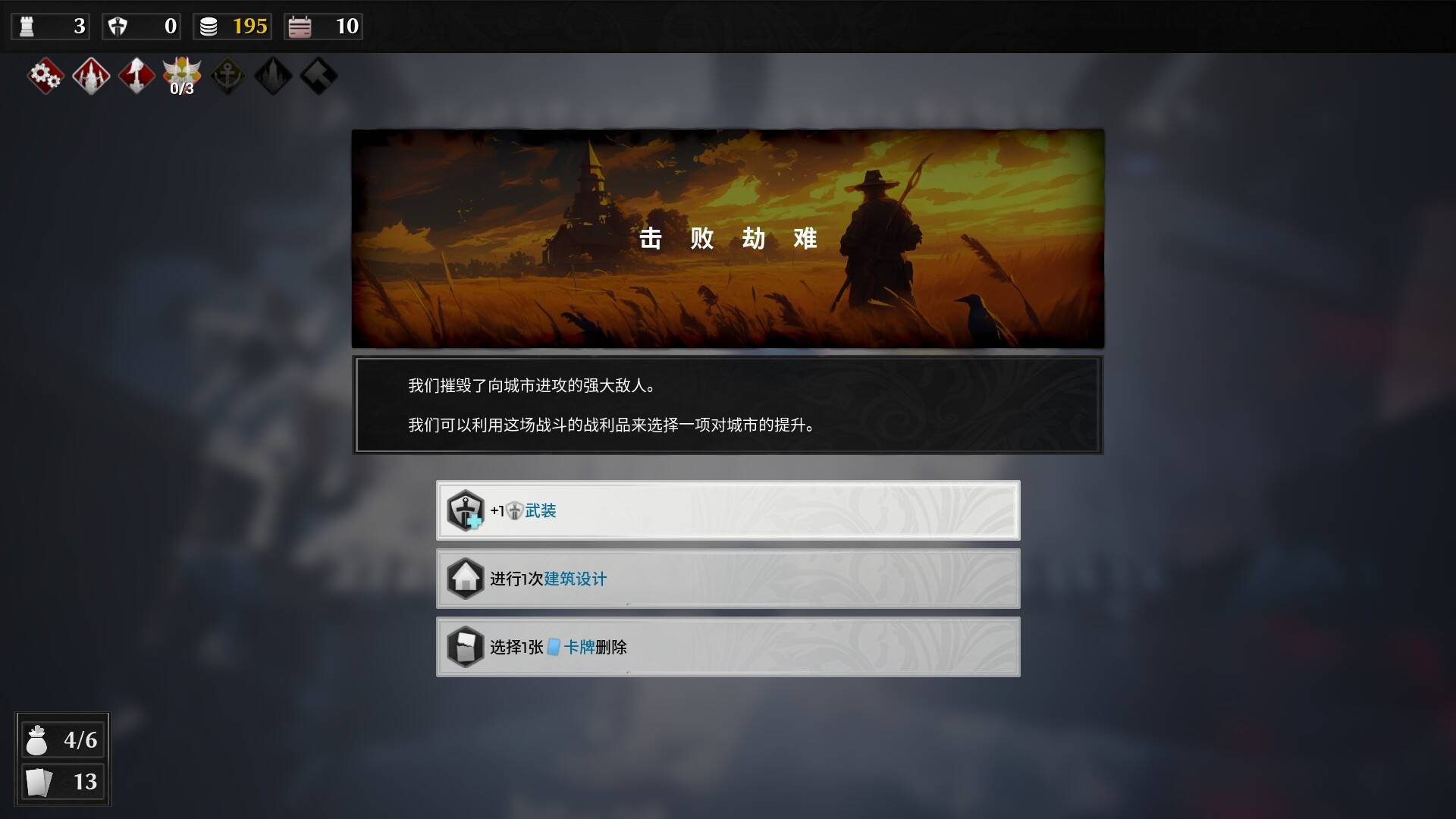在战场之外,游戏属于典型的rogue玩法,玩家将通过一个个局外事件来经营不同阵营间的平衡,在其中取得不同的增益,同时养成自己的卡组。此外,部分事件也会直接或间接影响战场本身,为了城市的长期生存考虑,玩家不得不在一些关键节点上牺牲一些阵营的利益,为了能更好迎合自己的战术,究竟是把所有资源倾向一方?还是遍地开花广纳贤士?这就交由玩家自己来权衡了。