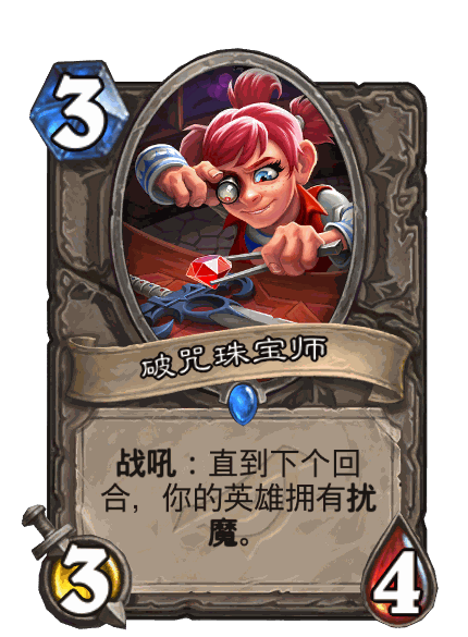 为了反制狗头人武僧,部分玩家开始往卡组或者乐队经理精英牛头人酋长里赛验尸官或掩息海星,而为了反制这一手,更极致的应对方案随之出现:在构筑中投入破咒珠宝师——只要察觉到对手有斩杀意图,就拍下这张不惧沉默的护脸神卡。